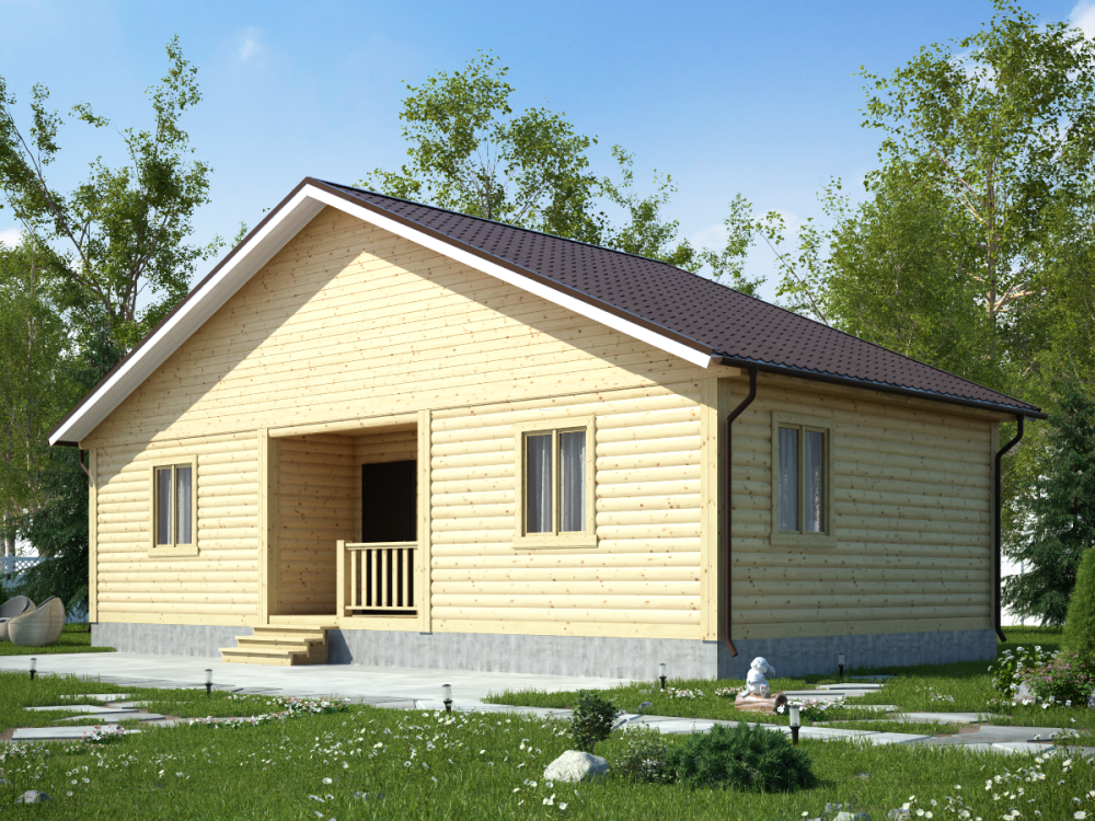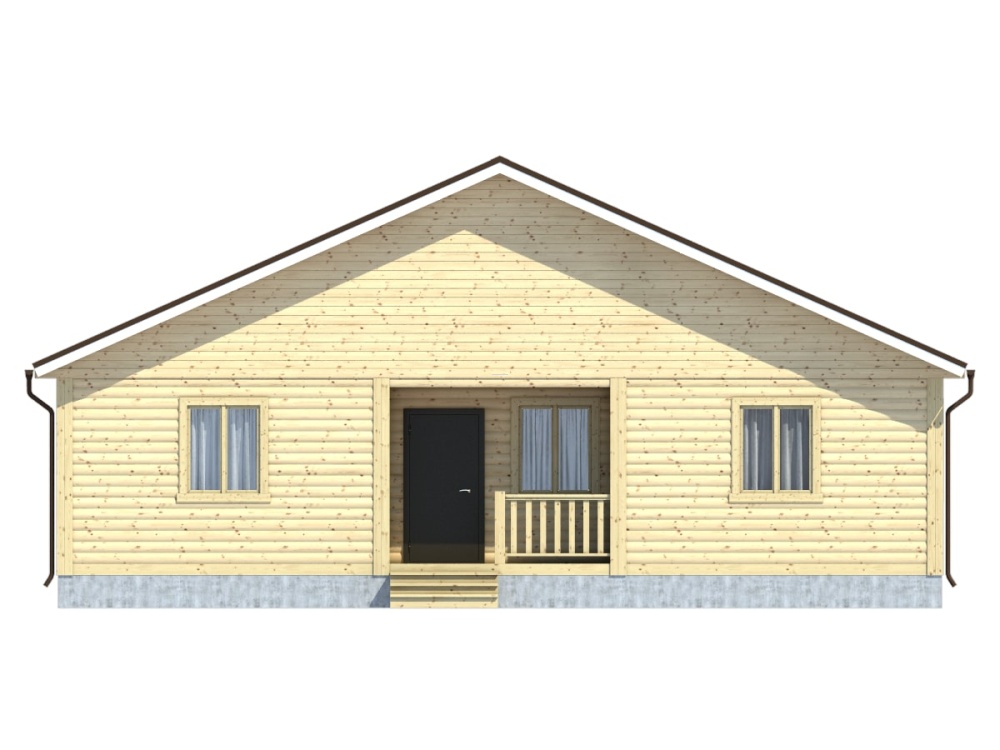 Проект дома из бруса с – одноэтажный коттедж общей площадью 57.6 кв.м., органично сочетающий в себе русский избяной и европейский стили. Четкие линии, сдержанные архитектурные решения и основной строительный материал – натуральная древесина – придают дому респектабельный вид.