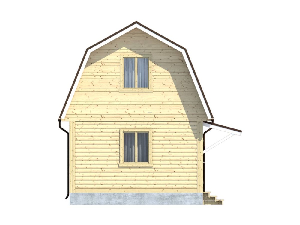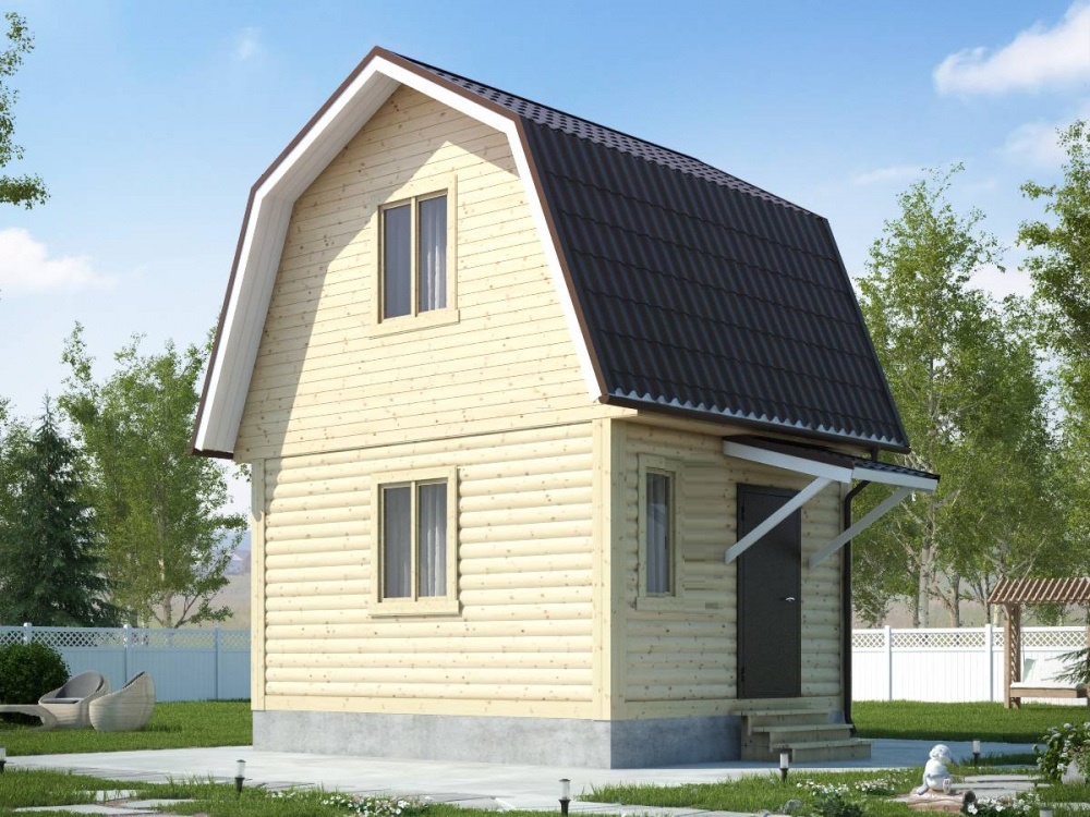 Проект дома из бруса с – полутораэтажный коттедж общей площадью 31.29 кв.м., органично сочетающий в себе русский избяной и европейский стили. Четкие линии, сдержанные архитектурные решения и основной строительный материал – натуральная древесина – придают дому респектабельный вид.
