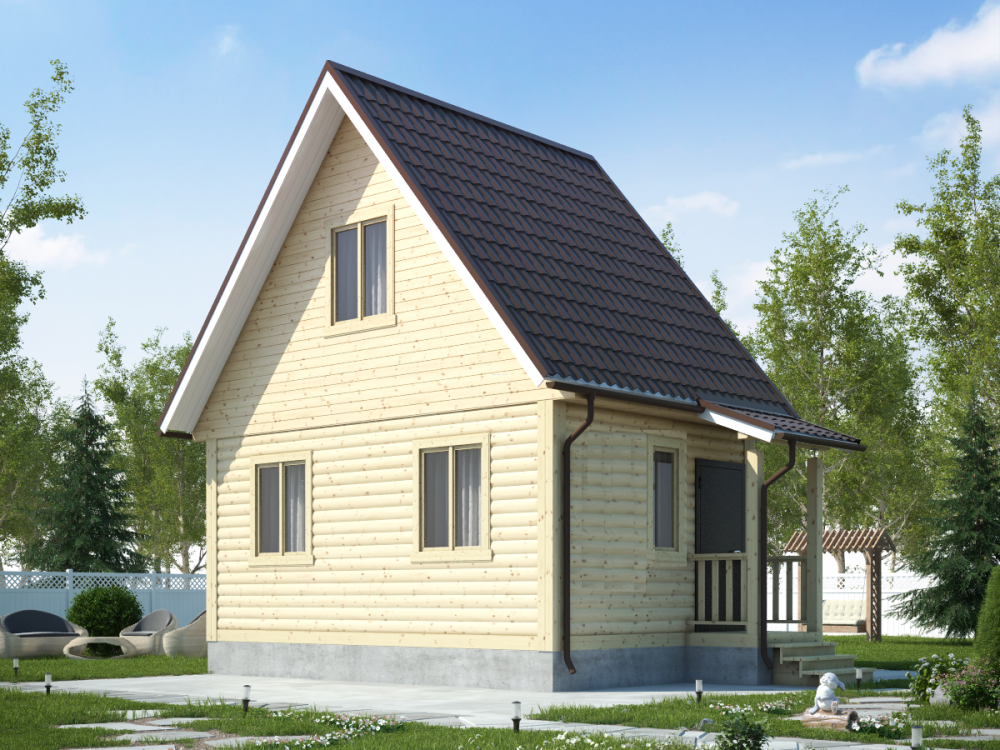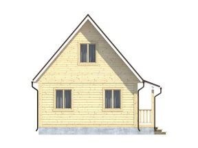 Проект дома из бруса с – полутораэтажный коттедж общей площадью 38.5 кв.м., органично сочетающий в себе русский избяной и европейский стили. Четкие линии, сдержанные архитектурные решения и основной строительный материал – натуральная древесина – придают дому респектабельный вид.