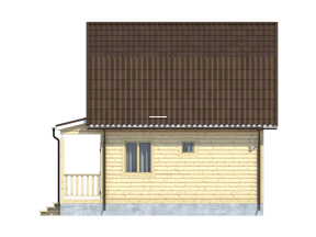 Проект дома из бруса с маленькой террасой – полутораэтажный коттедж общей площадью 58.82 кв.м., органично сочетающий в себе русский избяной и европейский стили. Четкие линии, сдержанные архитектурные решения и основной строительный материал – натуральная древесина – придают дому респектабельный вид.