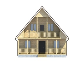 Проект дома из бруса с балконом и большой террасой – полутораэтажный коттедж общей площадью 81.75 кв.м., органично сочетающий в себе русский избяной и европейский стили. Четкие линии, сдержанные архитектурные решения и основной строительный материал – натуральная древесина – придают дому респектабельный вид.
