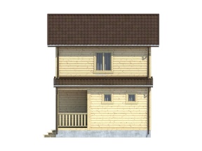 Проект дома из бруса с – двухэтажный коттедж общей площадью 70 кв.м., органично сочетающий в себе русский избяной и европейский стили. Четкие линии, сдержанные архитектурные решения и основной строительный материал – натуральная древесина – придают дому респектабельный вид.