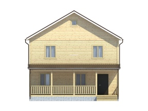 Общая площадь застройки дома составляет 140 кв.м., размер – 8х9 м.. Высота потолков первого этажа составляет 2,45 м. В жилых помещениях установлены двойные зимние окна. Двери филенчатые, их размер составляет 0,8x 2.0 м. Крыша двускатная с покрытием на основе ондулина, заказчик может выбирать его цвет: зеленый, красный или коричневый.