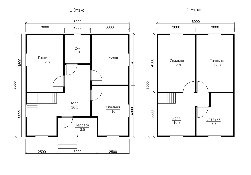 Самые популярные на текущий момент размеры: мини - до 50 кв. М (в основном, 1-этажные); компактные - от 70 до 100 кв. М (обычно двухэтажные); большие - начиная от 150 м2 и больше.