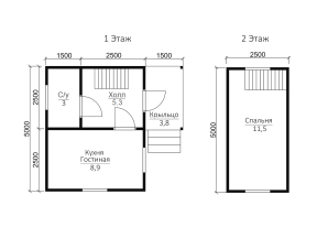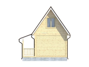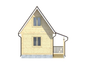 Общая площадь застройки дома составляет 29.79 кв.м., размер – 5х4 м.. Высота потолков первого этажа составляет 2,45 м. В жилых помещениях установлены двойные зимние окна. Двери филенчатые, их размер составляет 0,8x 2.0 м. Крыша двускатная с покрытием на основе ондулина, заказчик может выбирать его цвет: зеленый, красный или коричневый.