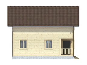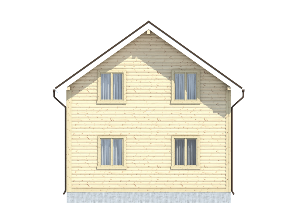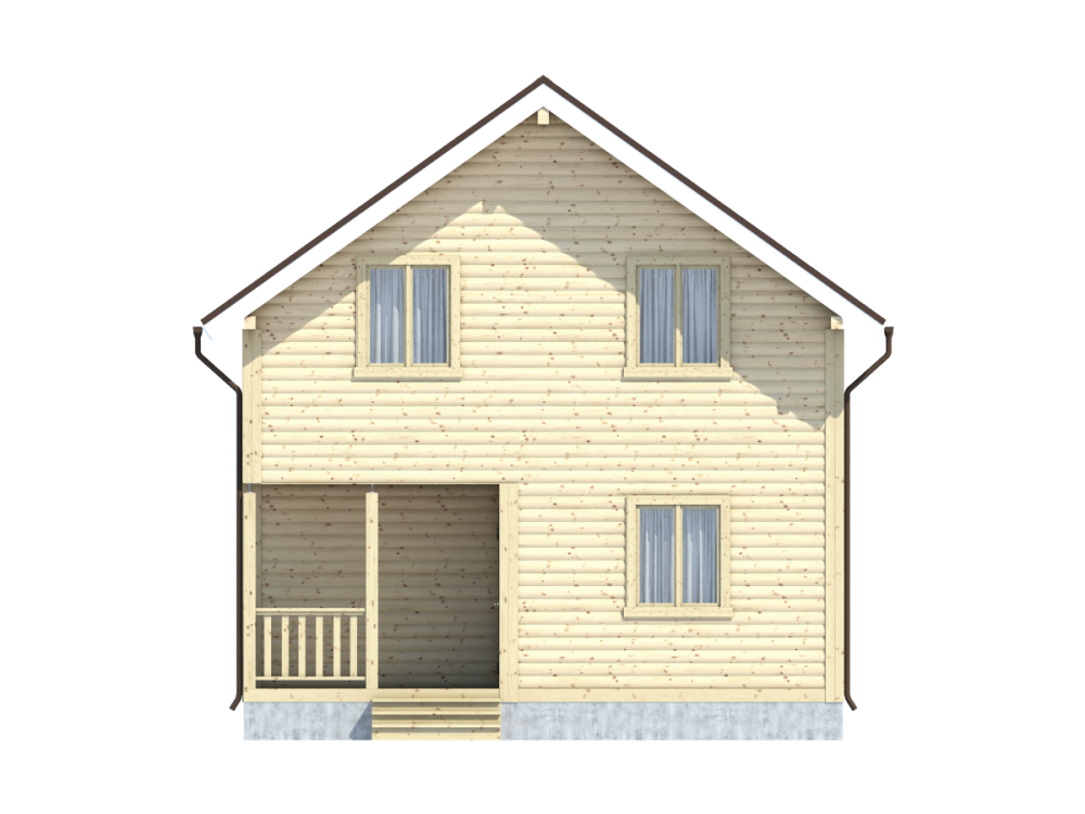 Общая площадь застройки дома составляет 120 кв.м., размер – 7х9 м.. Высота потолков первого этажа составляет 2,45 м. В жилых помещениях установлены двойные зимние окна. Двери филенчатые, их размер составляет 0,8x 2.0 м. Крыша двускатная с покрытием на основе ондулина, заказчик может выбирать его цвет: зеленый, красный или коричневый.